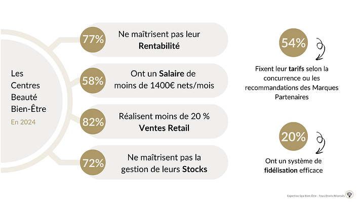 Ces résultats montrent que de nombreuses gérantes ne disposent pas des outils et des compétences nécessaires pour gérer efficacement leur centre. Et ce n’est pas surprenant : les études en esthétique sont avant tout orientées sur les techniques professionnelles, sans formation approfondie en gestion d’entreprise.